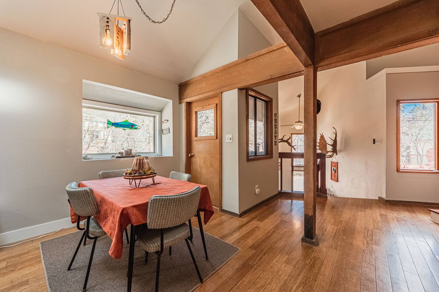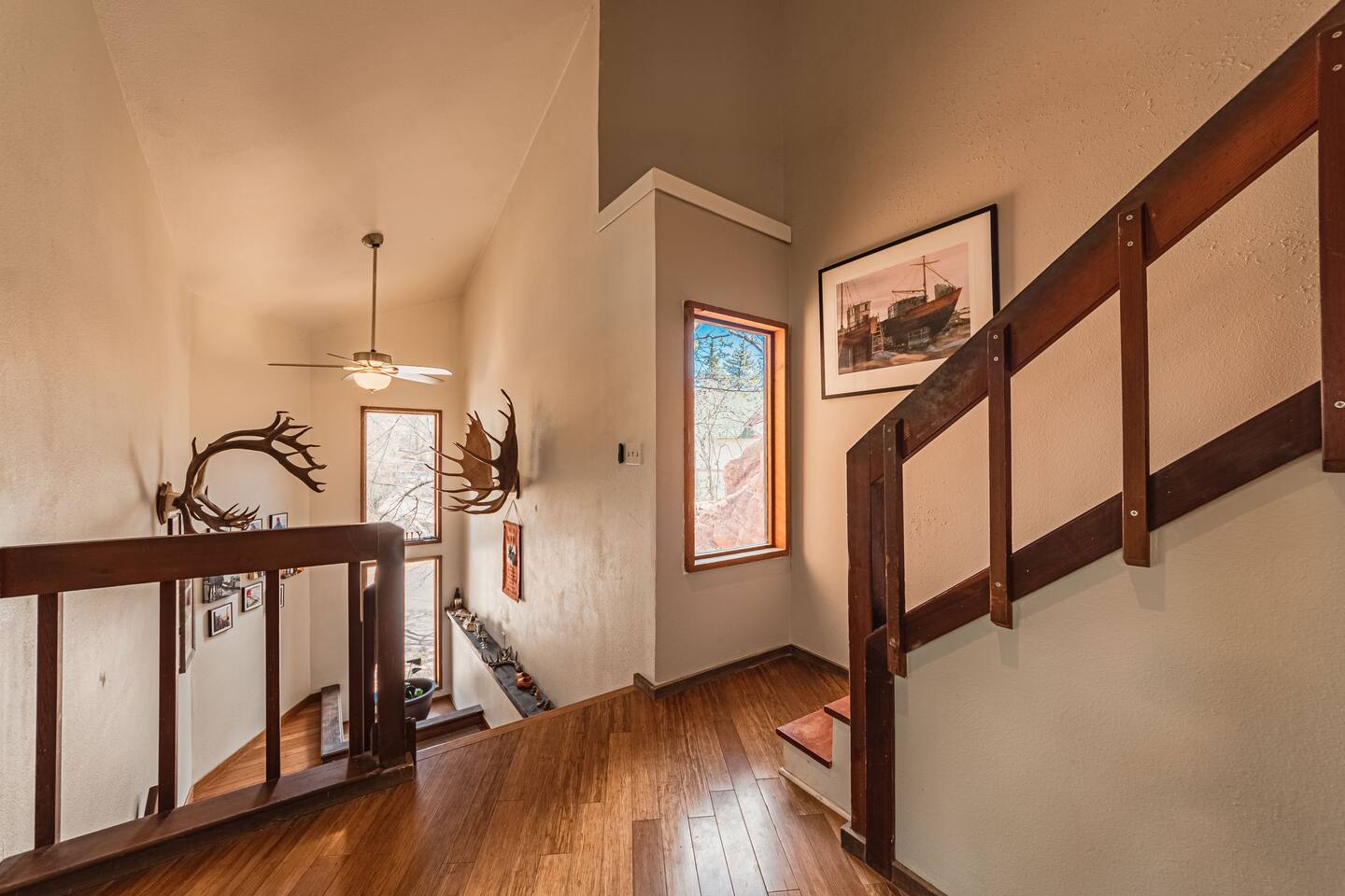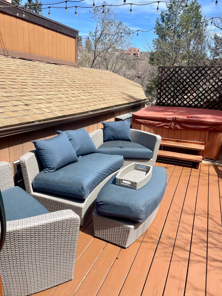 Welcome to your dream mountain retreat! This beautiful and unique home is conveniently located just a 7 minute walk from the shops, restaurants and galleries of Manitou Springs. Hike the Manitou Incline, an 11 minute walk up the street the other direction! This home boasts spectacular mountain views from the year-round private rooftop spa, tasteful updates throughout, and luxurious linens to rest easy from your adventures.